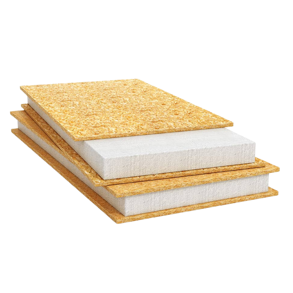 ¿Qué es un panel SIP de Aislapol? El panel SIP es una solución constructiva, que consiste en un núcleo de poliestireno expandido de densidad variable con un recubrimiento por ambas caras de una placa de OSB. Normalmente el tamaño es el americano, de 4 x 8 pies, eso es de 1,22 x 2,44 mts., y los espesores pueden variar desde 9 milímetros hasta 15 o más milímetros, siendo el tradicional en Chile el de 11,1 milímetros. Entonces tenemos un núcleo de poliestireno y dos caras de OSB de 11,1 milímetros. Es un panel estructural, tiene una norma en Chile mediante la cual se fabrica y rige las condiciones tales como la resistencia a la compresión, a la tracción, al desgarro del adhesivo y cosas de ese tipo.